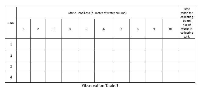 - Allow the system to attain the steady state. i.e, let the water pass from second overhead tank to the collecting tank