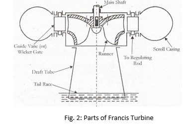 ● With help of the penstock the water is brought to the runner through wicket gates from the reservoir. According to the loading conditions the opening between the vanes can be adjusted to vary the quantity of water entering the turbine through governing mechanism.