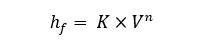 Where K is a loss coefficient and n ranges from 1.7 to 2.0 (depending on the value of Re and ks/D). This equation can be rewritten as :